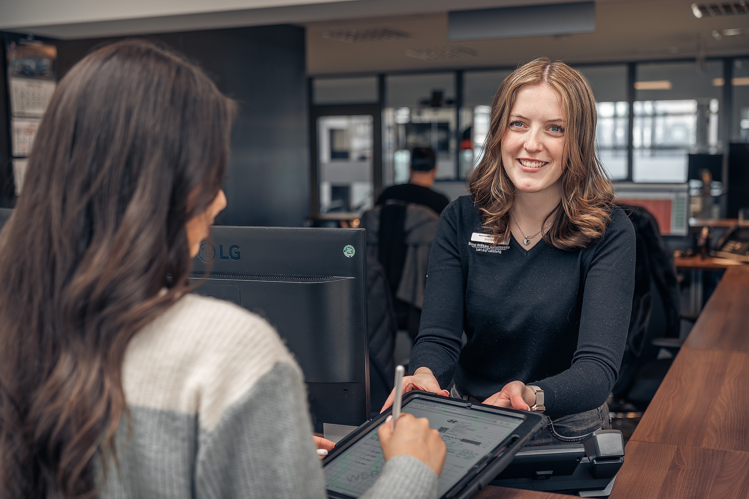 Empfang und Betreuung unserer Kunden: Mit Ihrer ausgeprägten Kommunikationsfähigkeit und Ihrem freundlichen Auftreten empfangen und betreuen Sie unsere Kunden. Sie sind der erste persönliche Ansprechpartner und das Gesicht unseres Autohauses. Ihre herzliche Begrüßung und professionelle Betreuung sorgen dafür, dass sich unsere Kunden von Anfang an wohl und gut aufgehoben fühlen.
